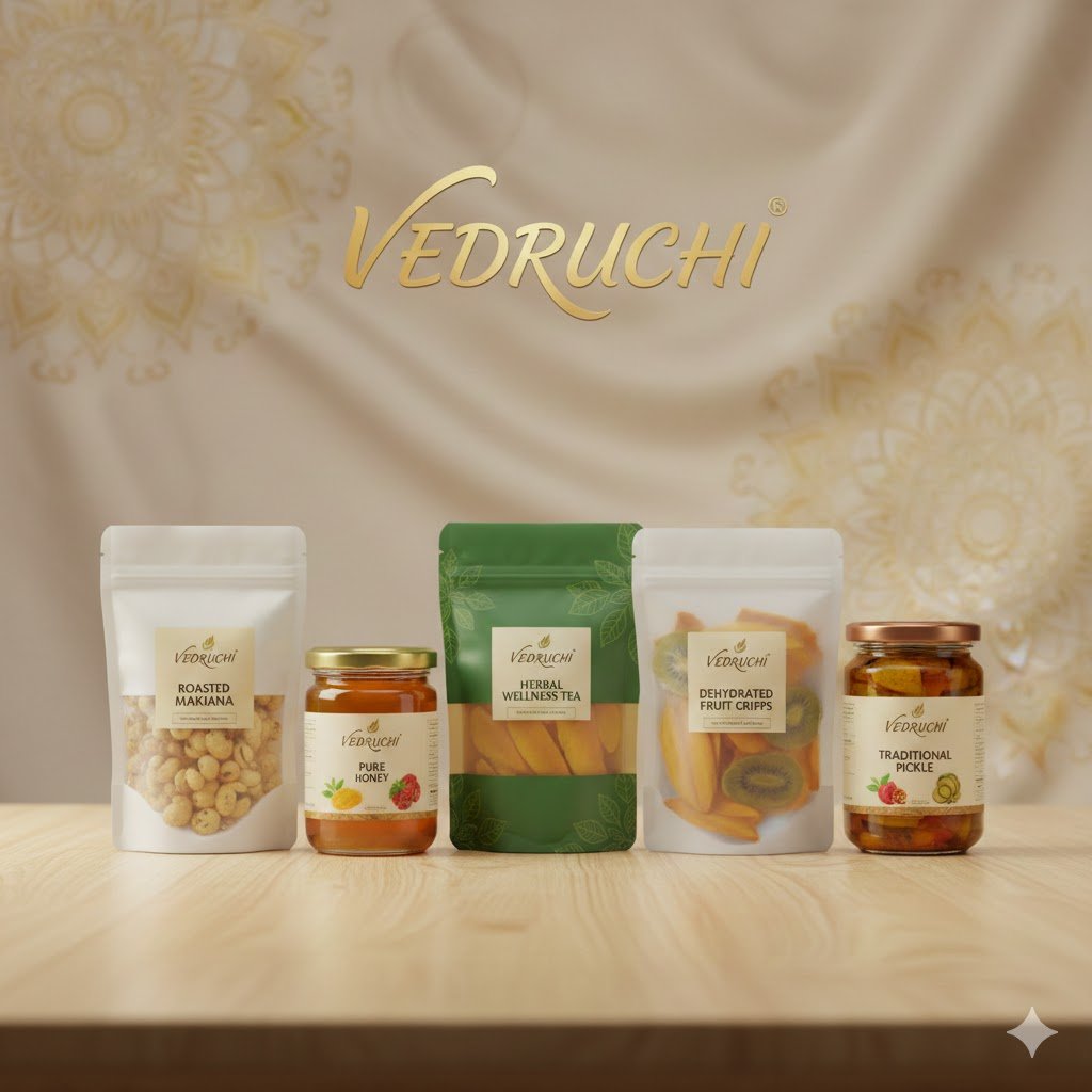 Vedruchi aims to bring you pure, natural & honest food products — from premium Makhana to authentic Honey, Herbal Tea, Pickles, Ghee & Superfoods.