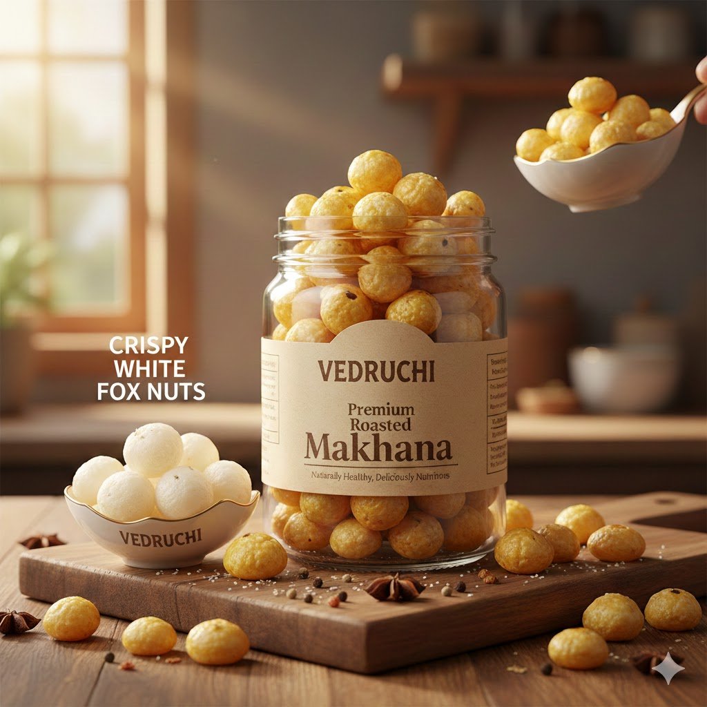 Vedruchi Premium Roasted Makhana – Healthy Crunchy Snack | Gluten-Free | High Protein | Low Fat | 100% Natural