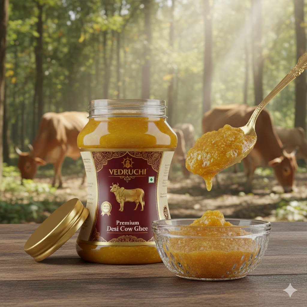 Vedruchi Bilona Traditional A2 Ghee – Pure Desi Cow Ghee | Hand-Churned | Grass-Fed Desi Cow Milk | Premium Ayurvedic Ghee