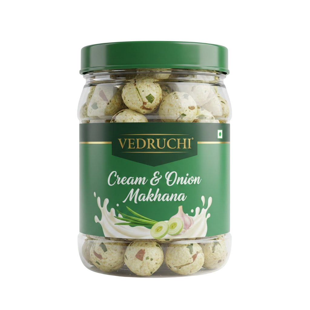 Unlike fried snacks, our makhana is non-fried, gluten-free, protein-rich, and packed with essential minerals. Whether you’re looking for a healthy tea-time snack or a tasty evening treat, Vedruchi Cream & Onion Makhana is your perfect choice.