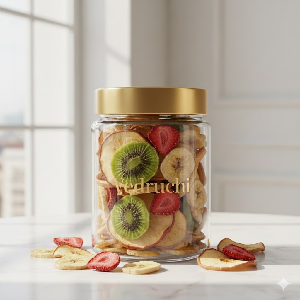 Free from frying, chemicals, and added sugar — Vedruchi dehydrated fruits offer the perfect balance of crunch and sweetness with no guilt.