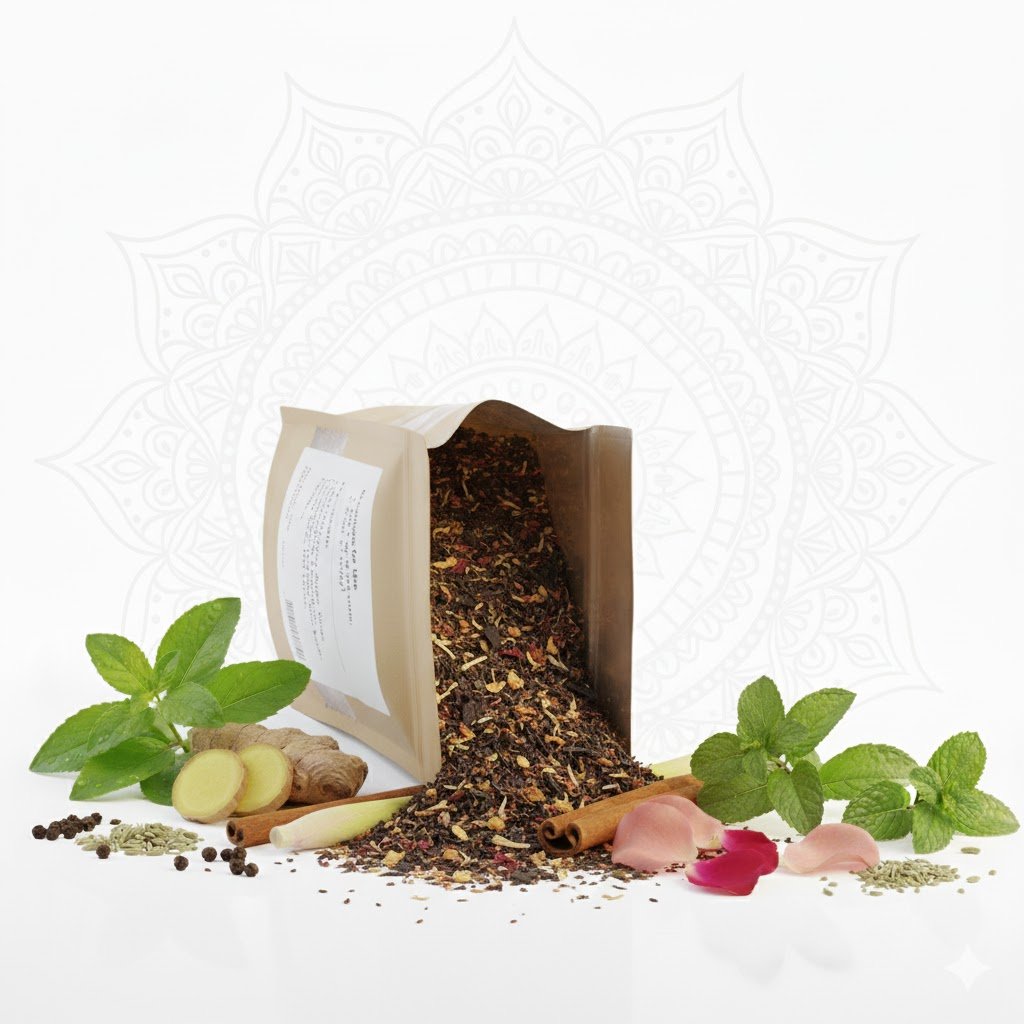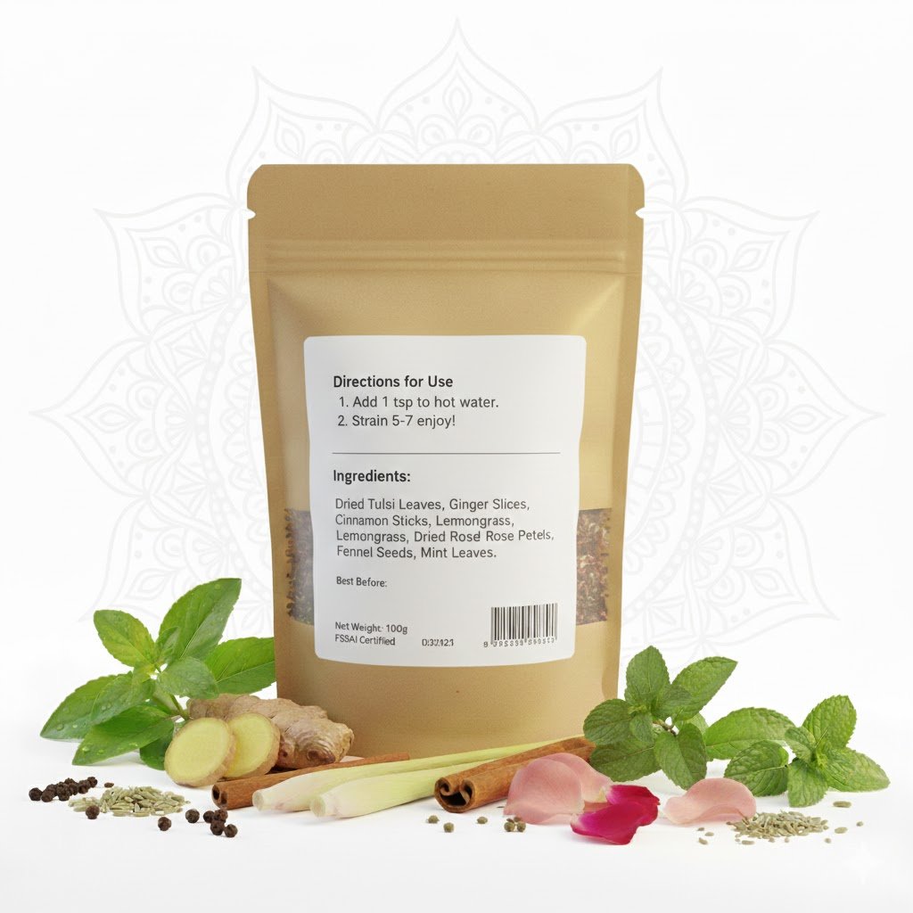 Introducing Vedruchi 100% Natural Herbal Tea, crafted with a premium mix of traditional Ayurvedic herbs known for their therapeutic benefits. Each cup offers purity, freshness, and healing properties that improve immunity, metabolism, gut health, and mental relaxation.
