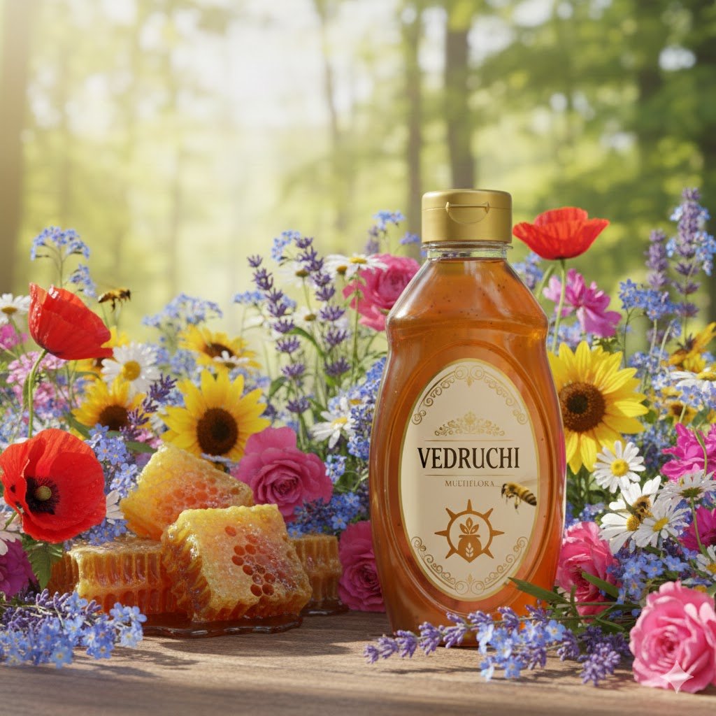 Vedruchi Premium Multiflora Honey is collected from natural bee farms located in pollution-free forest regions. This honey is known for its unique flavour profile, light-to-amber colour, and powerful health benefits.