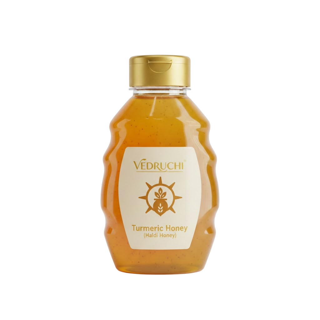 Discover the healing power of nature with Vedruchi Premium Turmeric Honey, a unique fusion of raw, unprocessed honey and high-curcumin turmeric. This golden elixir is known for its anti-inflammatory, antibacterial, and antioxidant properties, making it an excellent daily supplement for better health.